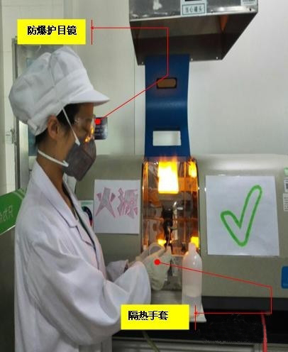 從熱源中拿取物品時(shí)需佩戴防護(hù)手套,避免燙傷,明火操作時(shí)也要佩戴護(hù)目鏡和隔熱手套。